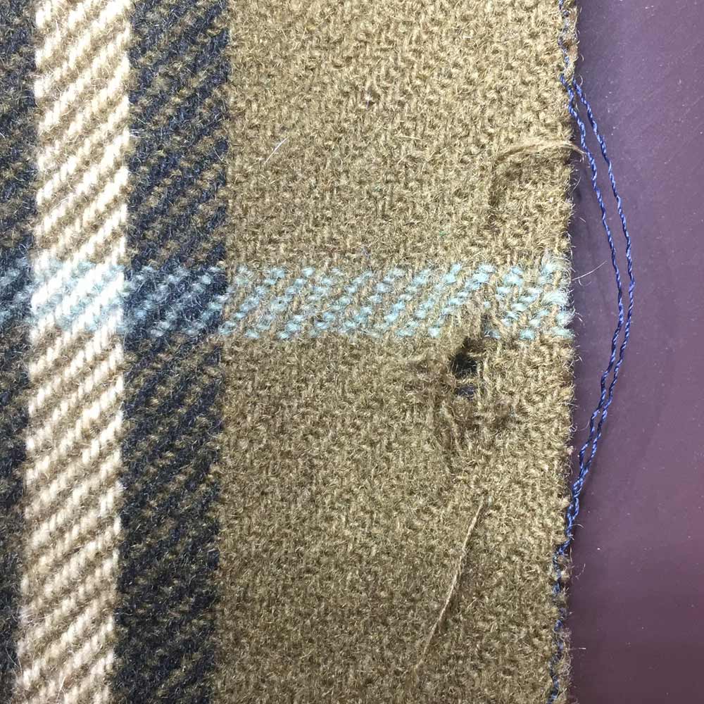 Le stoppage est une technique de restauration textile qui consiste à reconstituer intégralement une zone endommagée d’un tissu en reproduisant exactement son armure/sa structure d’origine.
